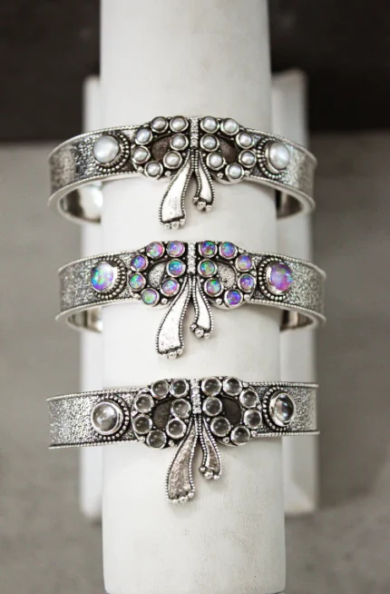 Make a bold statement with the Mesa Moon Sterling Silver Studded Cuffs, exclusively handmade for Krush Kandy. These stunning cuffs feature genuine sterling silver and a sleek studded design, blending timeless craftsmanship with modern flair. Perfect for adding a touch of flash to your wardrobe, these cuffs are a must-have for anyone looking to stand out. Don’t wait—preorder now before they’re gone for good!